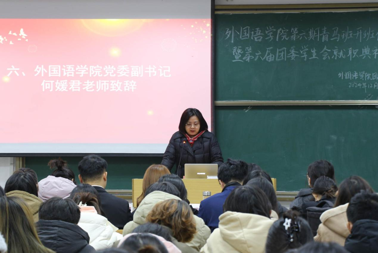 会议在庄严的国歌中拉开序幕。何媛君在会议中强调了“青年马克思主义者培训工程”所蕴含的重要意义,并向全体同学提出了五点明确要求:要树立大局意识,具备广阔视野与崇高使命感;要秉持实干精神,求真务实,将理论切实付诸实践;要重视学习积累,持续提升自我素养与知识储备;要强化团结协作,凝聚集体力量,携手共同奋进;要鼓励创新思维,勇于突破传统,积极探索全新路径与方法。