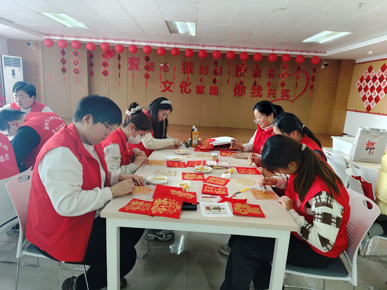 2025年1月14日至1月18日,2023级商务英语(2)班赵倩倩同学作为志愿者参加了安徽省合肥市综合文化中心的新年装扮活动。活动期间,她充分发挥自己的创意与动手能力,为社区精心制作春联、福字和各种装饰挂件。她与其他志愿者们团结合作,共同为社区贴春联、挂灯笼,用彩色拉花、剪纸等饰品装饰各个角落,让整个文化中心洋溢着浓浓的年味儿,为社区居民送来节日温暖。赵倩倩同学表示,此次志愿活动难忘且意义非凡。在装扮过程中,拓印福字,裁剪窗花,亲眼见证原本空旷的空间被喜庆红色填满,那种成就感难以言表。同时,她也深刻体会到团队合作的力量,明白了志愿服务的价值,更加坚定了参与志愿服务的决心,未来将继续传递这份温暖与美好。