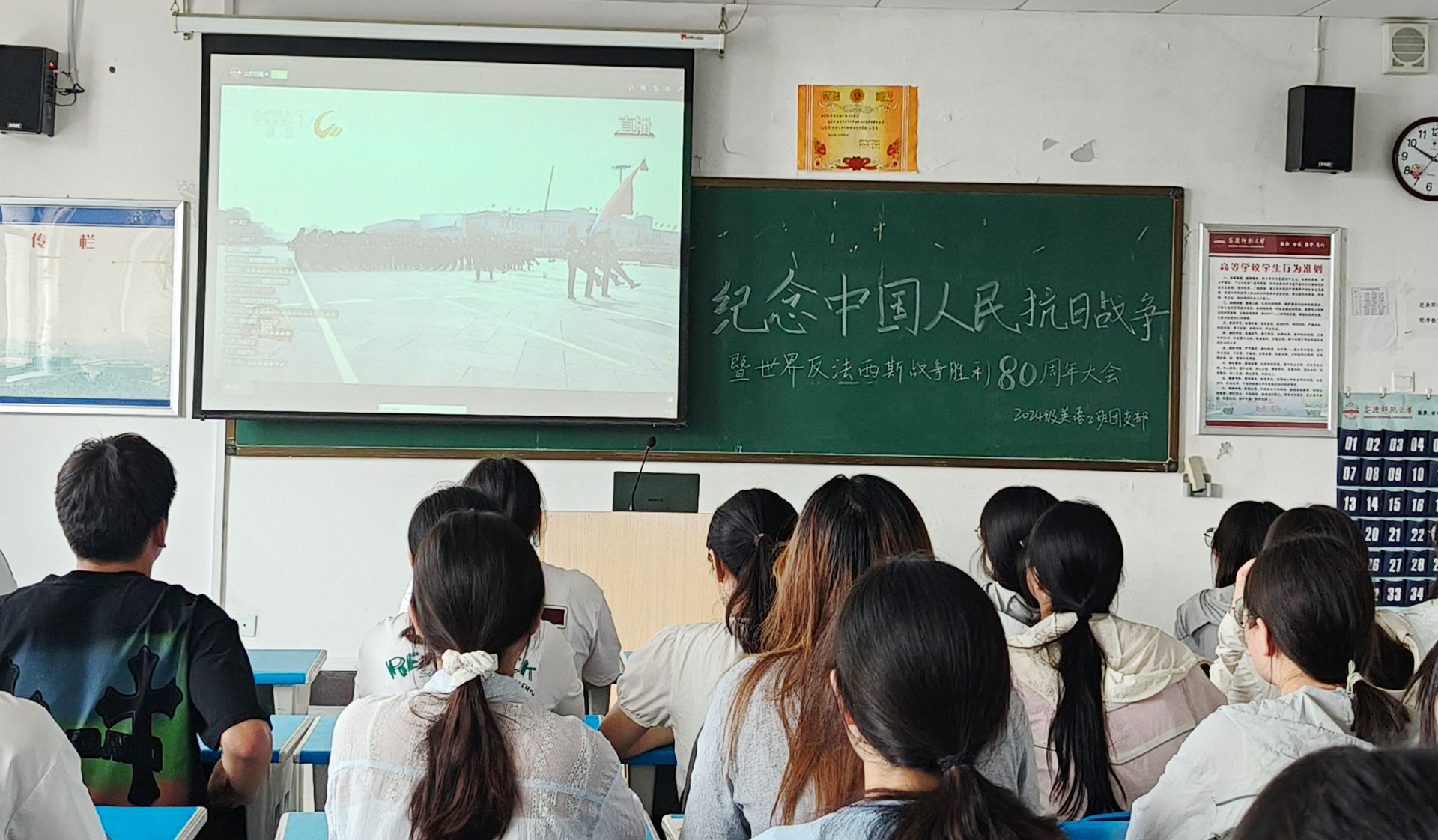 2025年9月3日上午9时,北京天安门广场举行纪念中国人民抗日战争暨世界反法西斯战争胜利80周年大会。beat365在线唯一官网组织师生集中观看大会直播,共同见证这一庄严历史时刻,同时,开展红色观影及党史知识竞答活动,以沉浸式思政教育引导师生铭记抗战历史、传承红色基因。值得一提的是,原中国人民解放军仪仗司礼大队退役复学士兵,beat365在线唯一官网商务英语2023级专业1班谭宁参加了此次阅兵,展现了当代青年的爱国情怀和责任担当。
