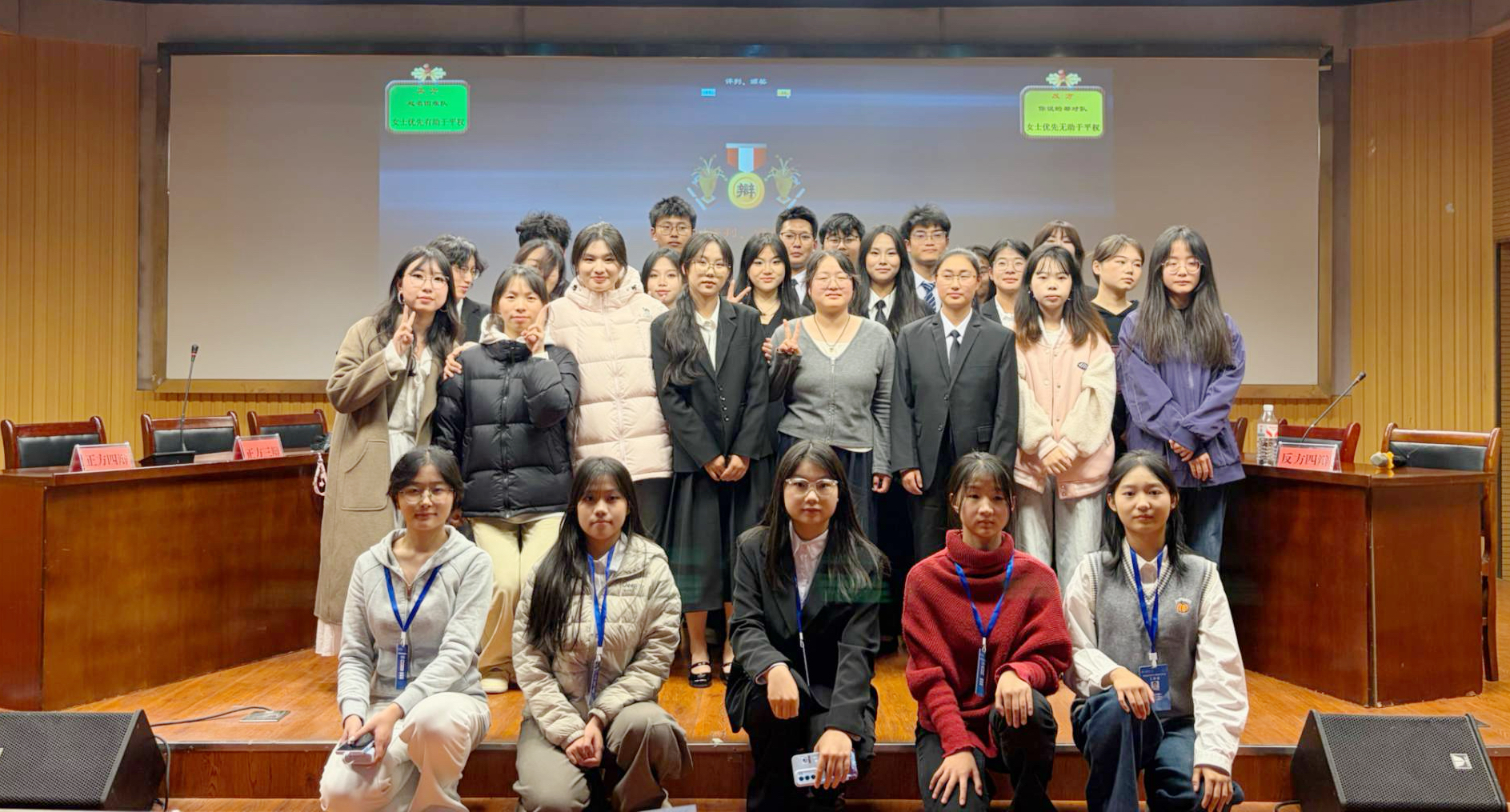 本次辩论赛共分为立论、质询、驳论及对辩、盘问及盘问小结、自由辩论、结辩和观众提问等环节。全程节奏紧凑、交锋激烈,经过多轮角逐,2025级外国语言文学类(2)班代表队凭借扎实的立论、敏捷的临场反应夺得冠军,2025级法语班获亚军,2025级外国语言文学类(4)班和(3)班分获季军与殿军。