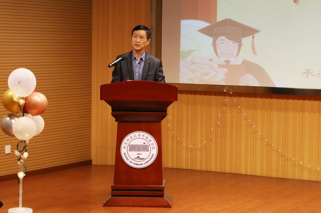 “学校图书馆、双龙湖畔、文书群里无处不留有你们奋斗的身影和努力的足迹。”院长王先荣上台致辞,他希望学生们“吾日三省吾身”——我是谁?我从哪里来?我要去向何方?“愿你们脚踏实地稳步前行,在各自的岗位上做得更好!”王先荣衷心祝愿每位毕业学子不忘初心、砥砺前行,他表示无论身处何处,母校永远是所有学子坚强的后盾和温暖的港湾。