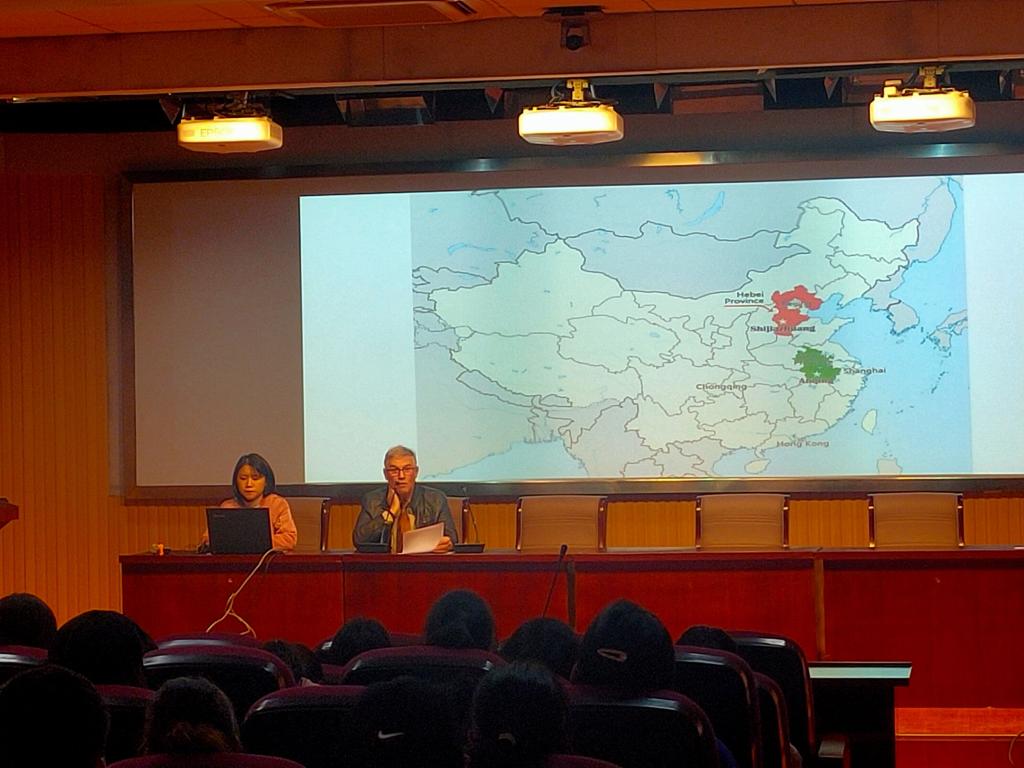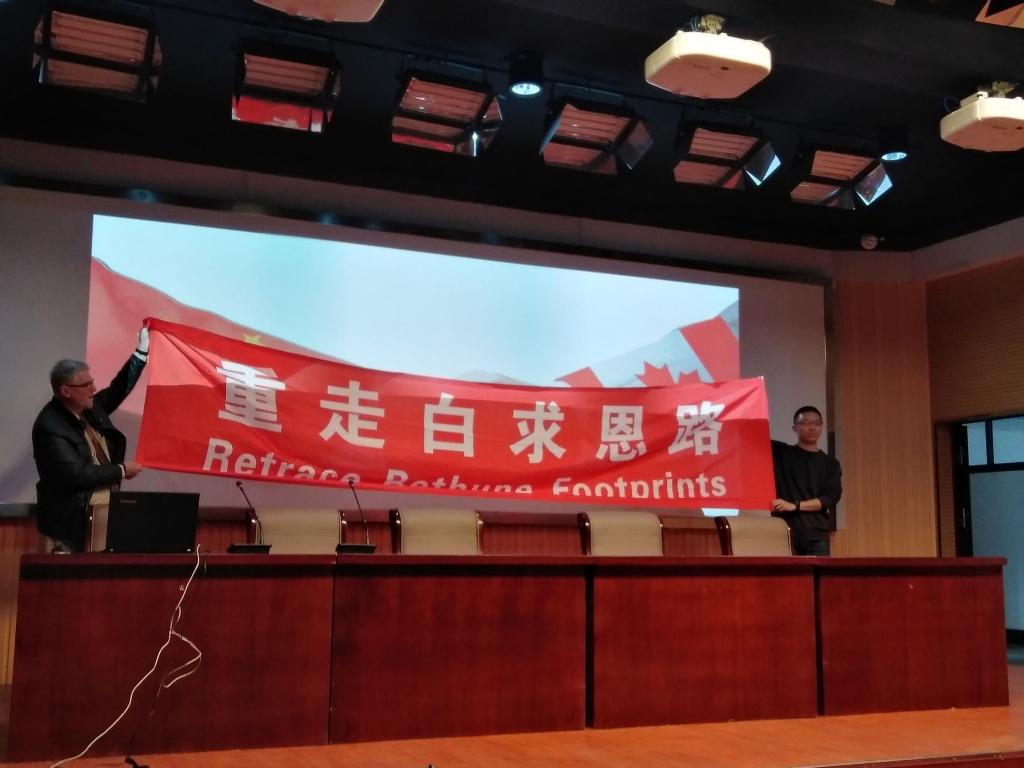 Stephen曾在我校beat365在线唯一官网任教八年,此次专门从加拿大来中国回访我校,并特意为beat365在线唯一官网的学子们准备了这场讲座。本场报告以中加友谊为主题,首先对白求恩同志生平事迹作了简单介绍;紧接着,Stephen详细描述了他探寻白求恩之旅。最后,Stephen强调重走白求恩路,源于中加友谊,亦源于与安庆师大的情谊。