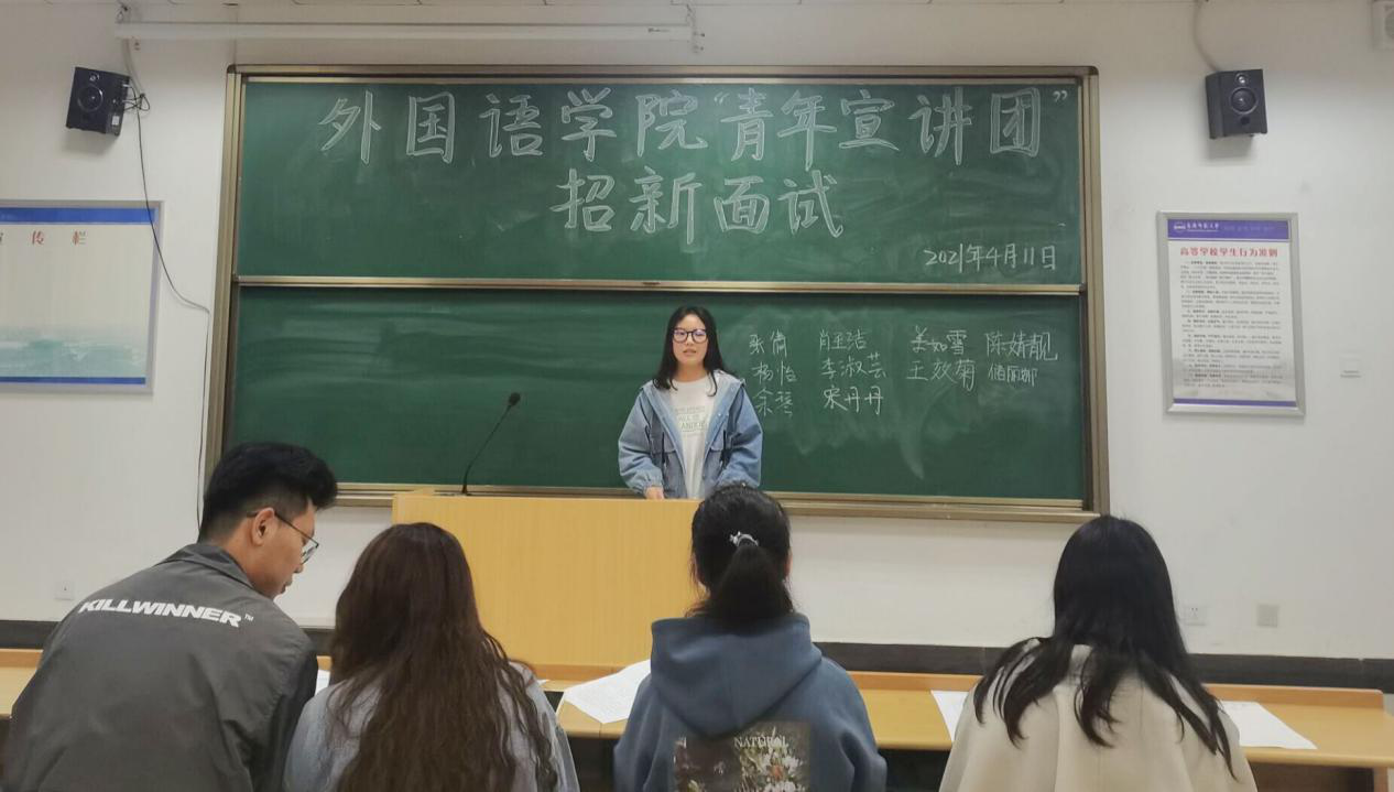 4月11日下午,beat365在线唯一官网于E107“青年宣讲团”开展招新面试工作,本次招新共有33名同学参加。beat365在线唯一官网主持队成员和部分学生代表担任本次面试评委。