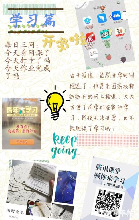 防疫日记由加油篇、美食篇和学习篇三个章节组成。加油篇中,beat365在线唯一官网学生用自制文案和画作,聚焦社会热点,记录下勠力同心战“疫”过程中的诸多暖心瞬间,再现一线人员的冲锋陷阵、普通民众的守望相助。美食篇中,学院学生纷纷晒出自己居家所做的美食,分享诸如“第一次做蛋糕”“又一位大厨出道”“拉近了与父母的距离”的烹饪心得,以独特的方式展现面对疫情的生活态度。学习篇则立足高校正在开展的网络授课,鼓励学生积极投入到各课程的线上学习中,踊跃进行课上互动,自觉完成线上作业,利用优质的学习渠道进行“自我充电”。