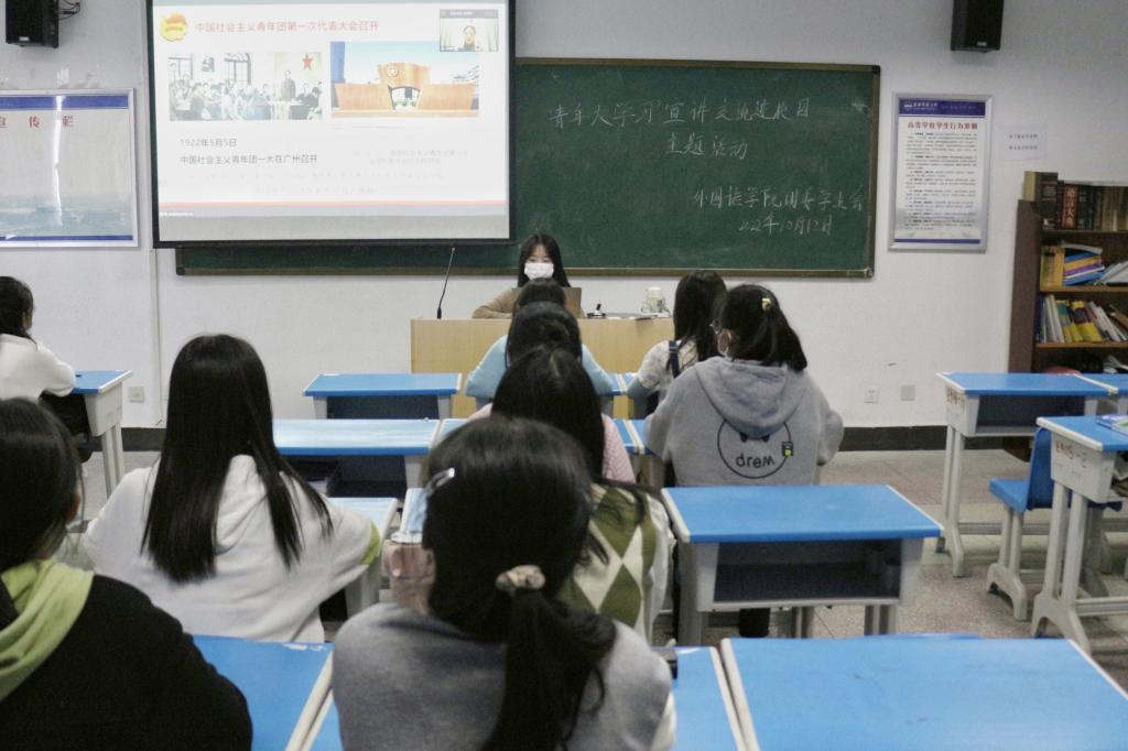 为深入学习贯彻习近平总书记在庆祝中国共青团成立100周年大会上的重要讲话精神,进一步夯实新时代青年坚定不移跟党走的信念和意志,团结引领青年接续奋斗、勇毅前行,10月12日下午,beat365在线唯一官网组织百余名青年团员于E406分会场参与“青年大学习”宣讲交流进校园活动。