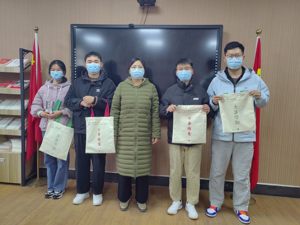 一份份慰问品整齐排列在桌子上,收到的学生脸上难掩惊讶。帆布包上的“未来可期”绿色字样寓意着学生“研途”一路绿灯,而“万事顺意”的红色字样则是祝福学生红红火火,提前准备的考试用具更是希望学生在考试时顺顺利利……学院为260名考研学生特别定制了“考研大礼包”,希望学生能够在最后的冲刺阶段合理规划时间、调整心态、坚定目标、一研为定。
