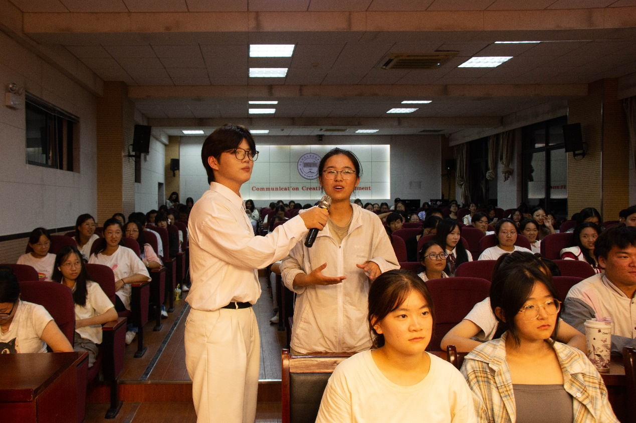 活动期间还设置了多个互动环节,包括糖果小游戏、知识问答等。同学们在活动中积极表达自己的想法,主持队成员热情答疑解惑。这些环节不仅增加了活动的趣味性,也让同学们在轻松愉快的氛围中学习到了实用的知识。“通过这次活动,我对爱情观和恋爱观有了进一步的认识,同时了解了导致意外怀孕的因素等相关知识。”2024级外国语言文学类9班秦欢坦言,这些知识能增强自我保护意识,使她受益匪浅。